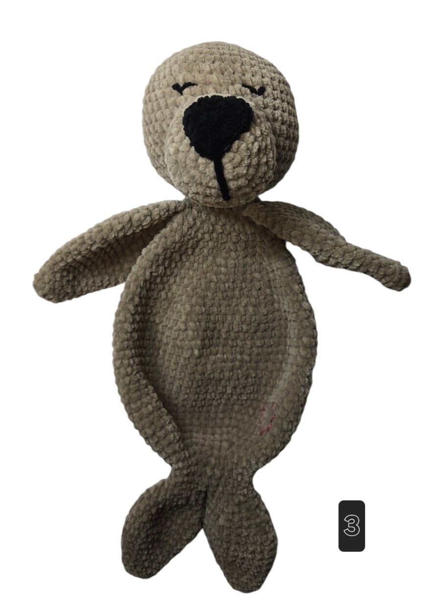 Saar zeehond knuffeldoek wordt gehaakt van het zachte Durable Velvet. In het pakket zit voldoende garen, oogjes en een geprint patroon. De haaknaald (5.0 mm) en de vulling dient u zelf toe te voegen.